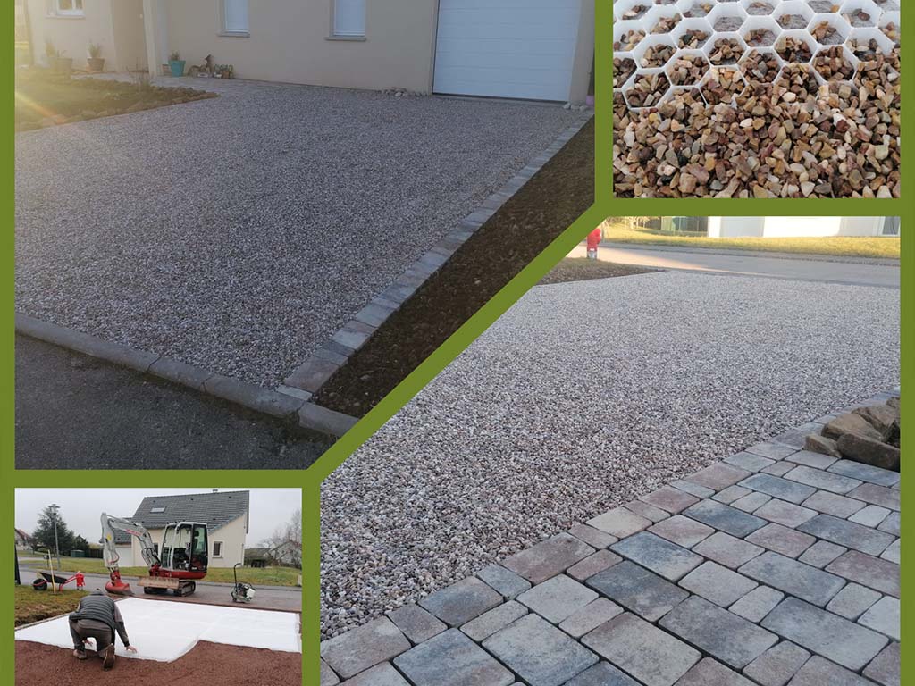 pavés drainants, dalles à engazonnement ….